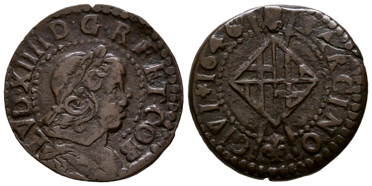 GUERRA DELS SEGADORS (1640-1652). 1 Sisé (Ae. 3,84g/22mm). 1646. Barcelona. Busto definitivo de Luis XIV. (Cal-2019-50). MBC.