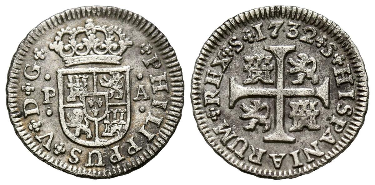 FELIPE V (1700-1746). 1/2 Real (Ar. 1,43g/16mm). 1732. Sevilla PA. (Cal-2019-338). MBC.