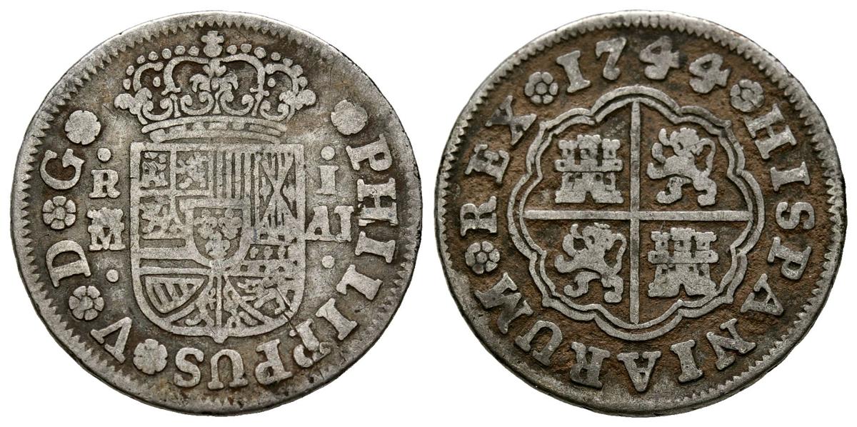 FELIPE V (1700-1746). 1 Real. (Ar. 2,78g/20mm). 1744. Madrid AJ. (Cal-2019-461). MBC-.