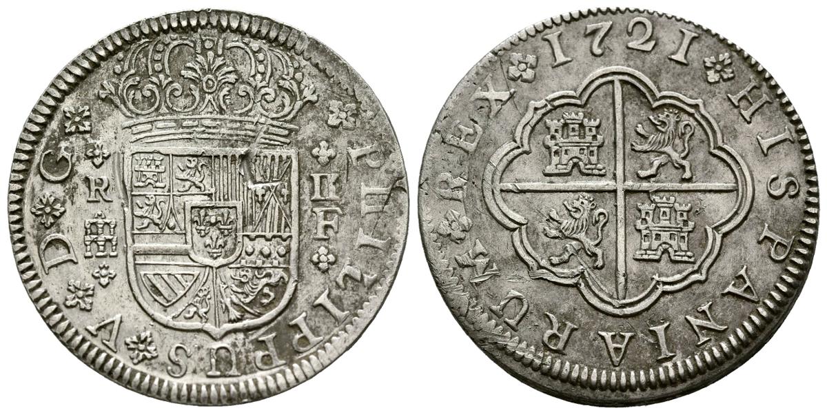 FELIPE V (1700-1746). 2 Reales. (Ar. 5,80g/27mm). 1721. Segovia F. (Cal-2019-954). MBC+. Bonito ejemplar.