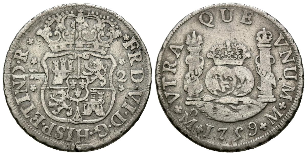 FERNANDO VI (1746-1759). 2 Reales. (Ar. 6,59g/26mm). 1759. México M. (Cal-2019-306). MBC-.