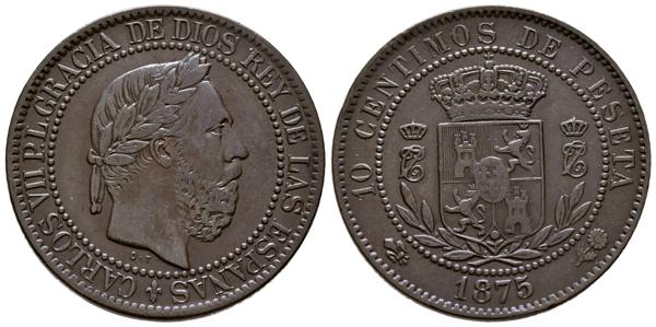 CARLOS VII (1868-1909). 10 Céntimos. (Ae. 10,01g/30mm). 1875. Oñate. (Cal-2019-5). EBC-. Bonita pieza.