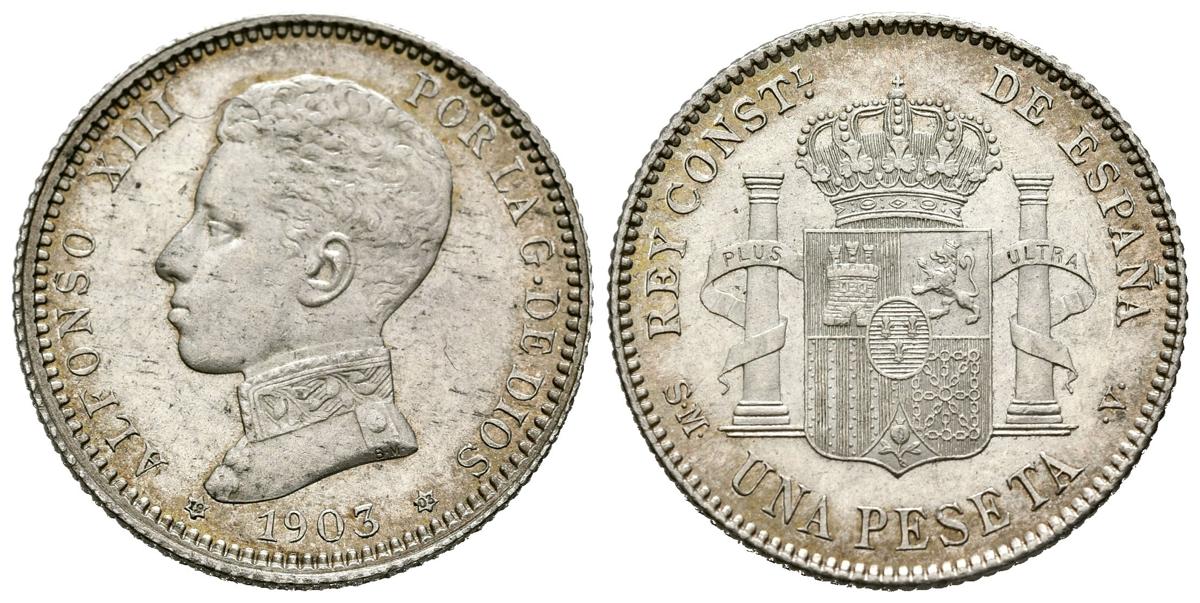 ALFONSO XIII (1885-1931). 1 Peseta. (Ar. 5,03g/23mm). 1903 *19-03. Madrid SMV. (Cal-2019-67). EBC+. Preciosa pátina.