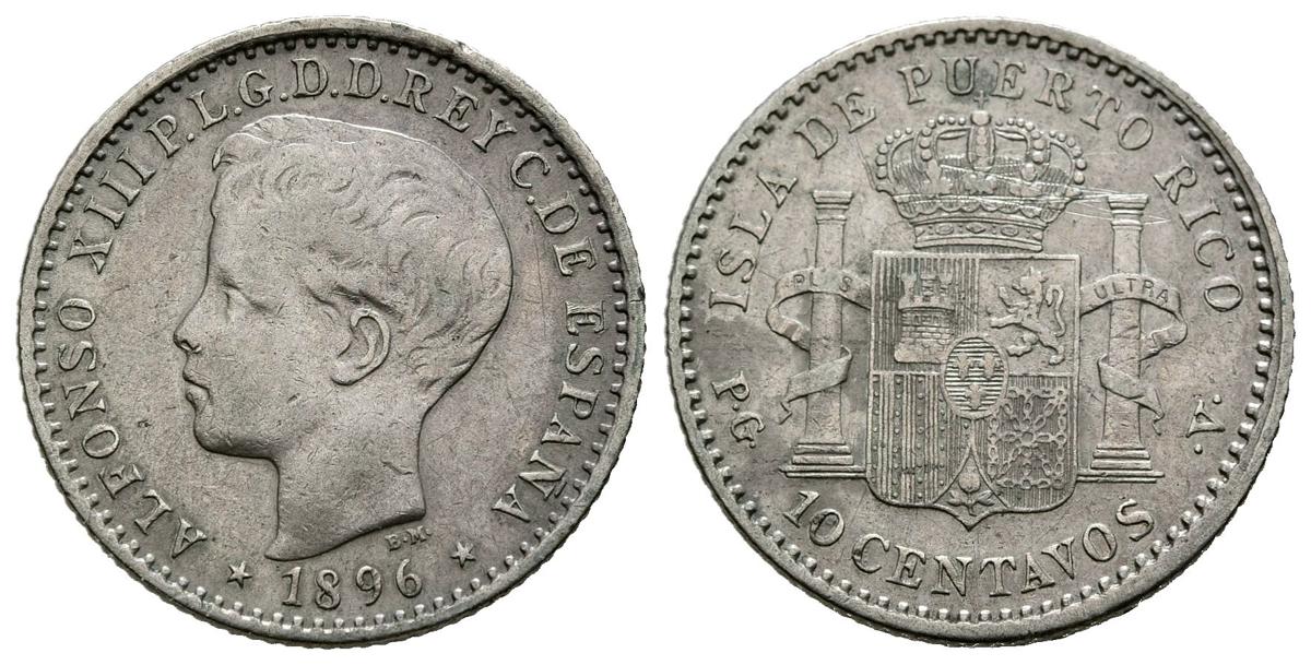 ALFONSO XIII (1885-1931). 10 Centavos. (Ar. 2,60g/18mm). 1896. Puerto Rico PGV. (Cal-2019-125). MBC.