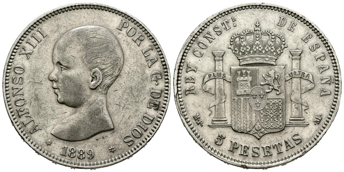 ALFONSO XIII (1885-1931). 5 Pesetas. (Ar. 24,86g/37mm). 1889 *18-89. Madrid MPM. (Cal-2019-93). MBC.