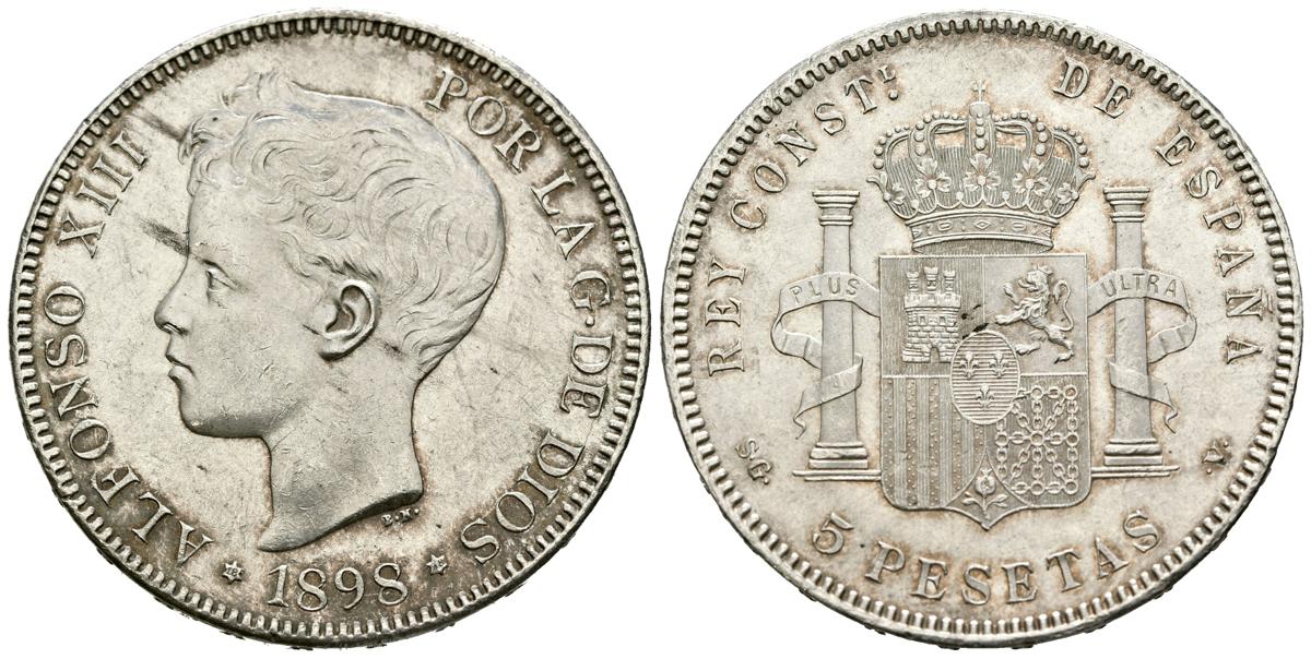 ALFONSO XIII (1885-1931). 5 Pesetas. (Ar. 25,00g/37mm). 1898 *18-98. Madrid SGV. (Cal-2019-109). EBC. Ligeras rayitas.