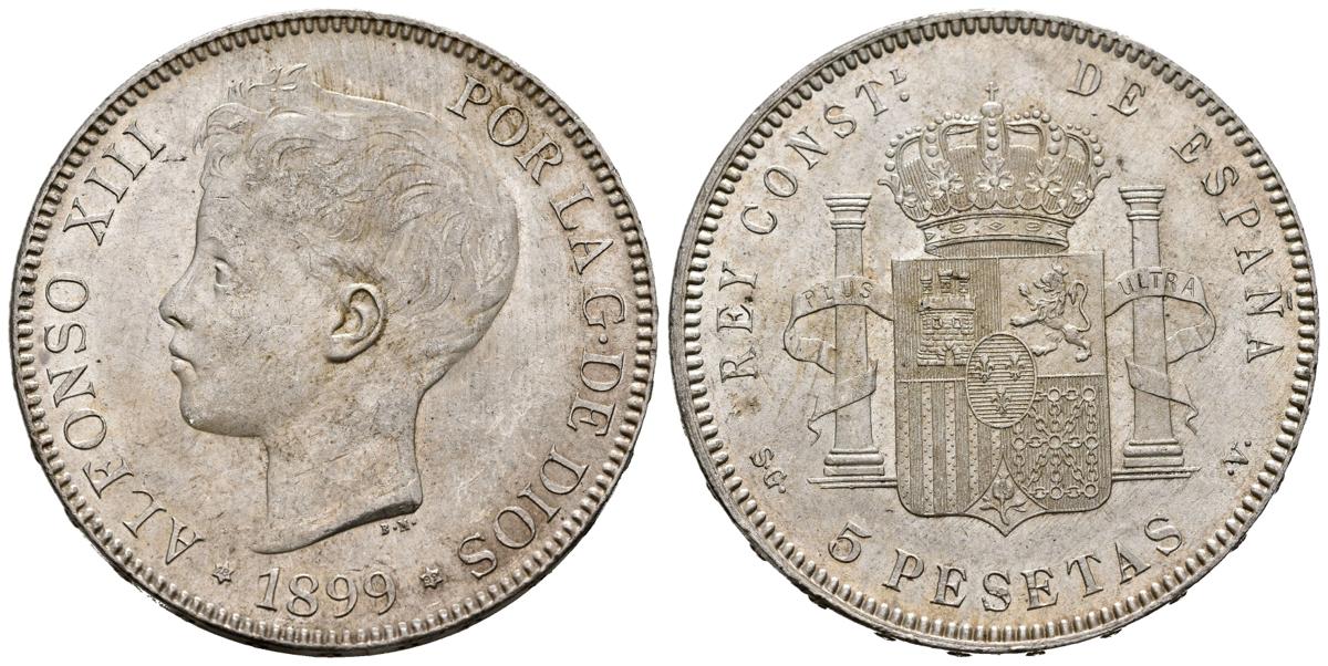 ALFONSO XIII (1885-1931). 5 Pesetas. (Ar. 25,13g/37mm). 1899 *18-99. Madrid SGV. (Cal-2019-110). EBC+.