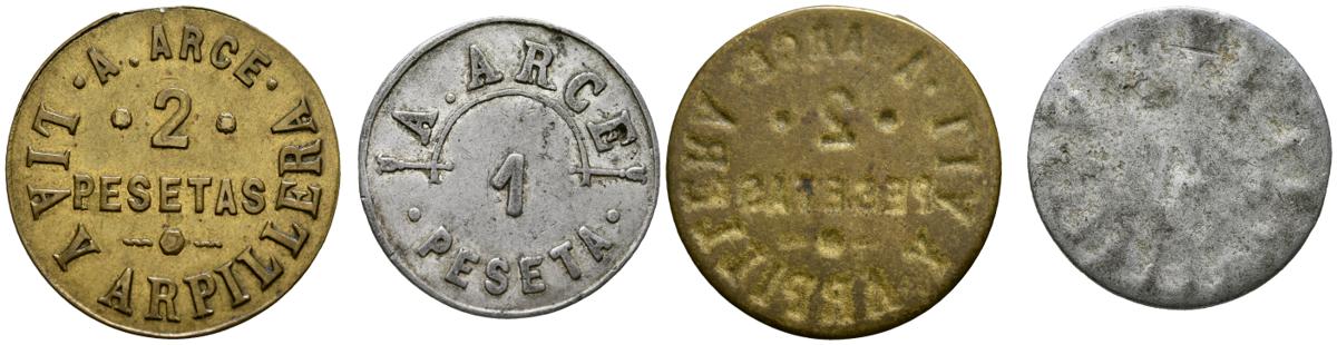 ESPAÑA. Mercado de la Cebada (Madrid). A. Arce. 2 piezas con valores de 1 y 2 Pesetas. Acuñados en la primera mitad del S. XX. MBC+. A EXAMINAR.