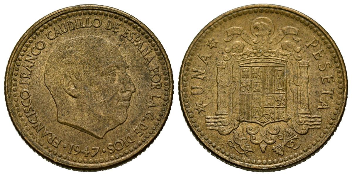 ESTADO ESPAÑOL (1936-1975). 1 Peseta. (Al-Ae. 3,61g/21mm). 1947 *19-52. Madrid. (Cal-2019-52). SC-.