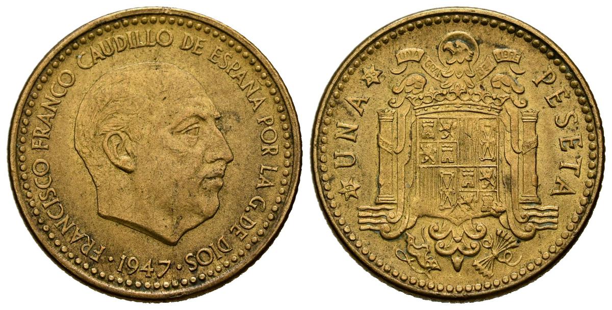 ESTADO ESPAÑOL (1936-1975). 1 Peseta. (Al-Cu. 3,66g/21mm). 1947 *19-56. Madrid. (Cal-2019-55). EBC+. Escasa y más así.