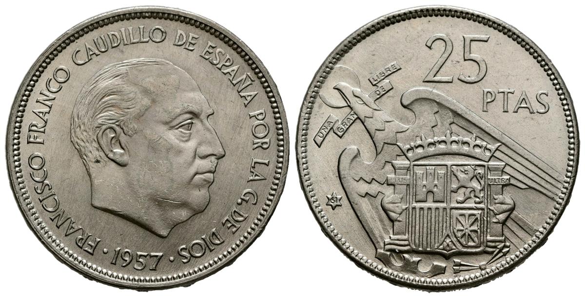 ESTADO ESPAÑOL (1936-1975). 25 Pesetas. (Ni. 8,88g/27mm). 1957 *61. Madrid. (Cal-2019-118). SC. Escasa.