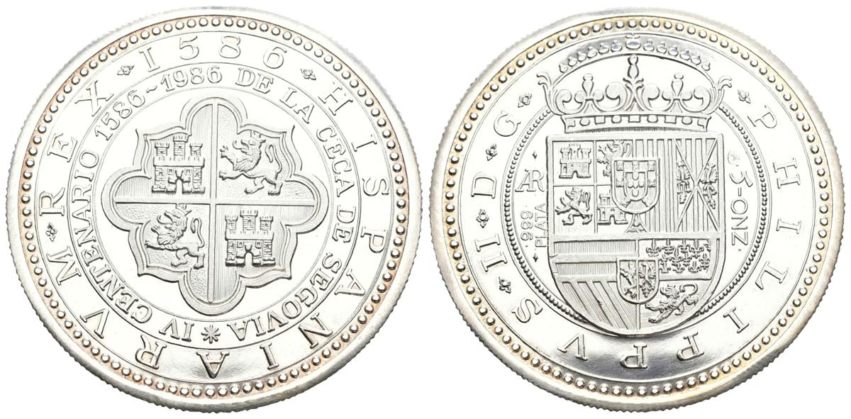 Cinquentín o 5 Onzas (Ar. 154,57g/64mm). 1986. IV Centenario de la Casa de la Moneda de Segovia (1586-1986). Plata de 0,999 milésima. PROOF. Incluye cápsula.