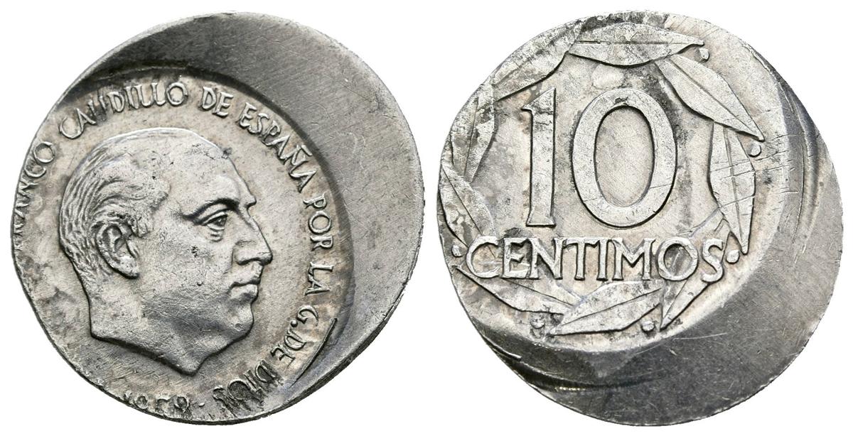 ESTADO ESPAÑOL (1936-1975). 10 Céntimos. (Al. 0,75g/18mm). 1959. Madrid. (Cal-2019-16). EBC-. Acuñación muy desplazada: 5 mm.