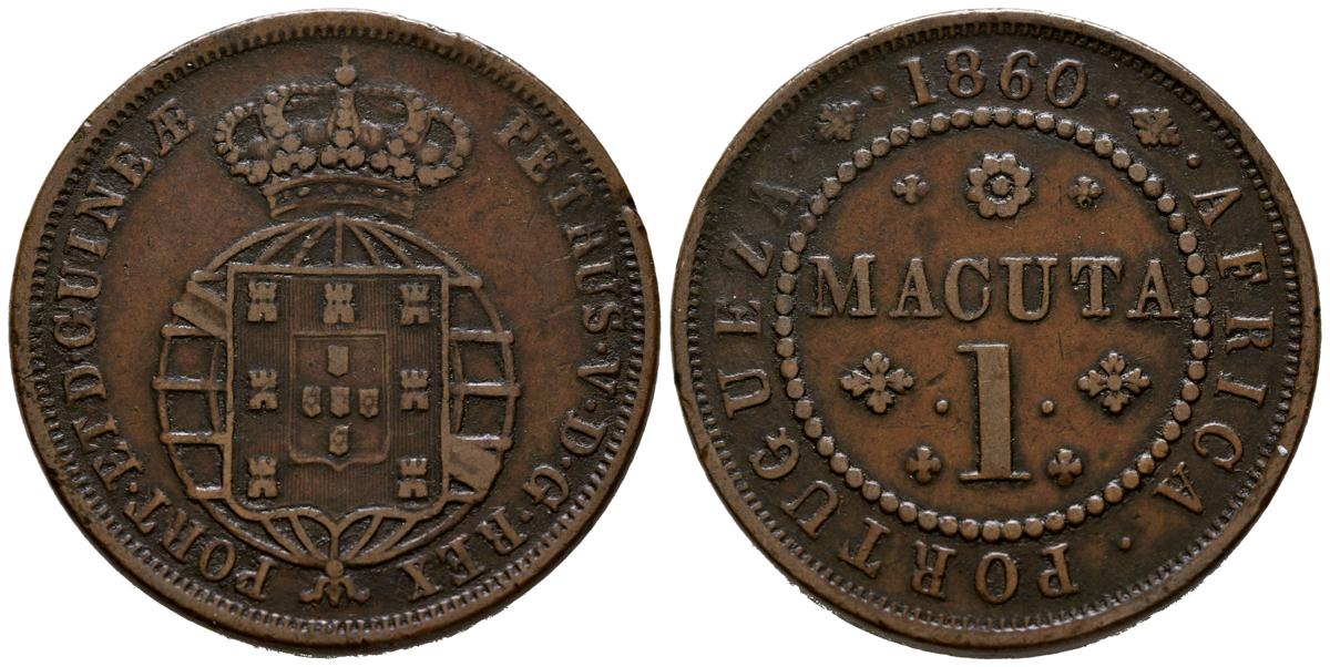 ANGOLA (Portuguesa), Pedro V. 1 Macuta. (Ae. 36,58g/38mm). 1860. (Gomes 02.01). MBC.