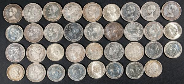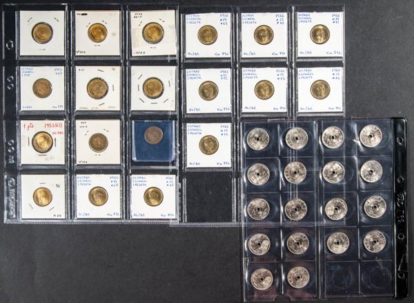 ESTADO ESPAÑOL (1936-1975). Interesante conjunto de 37 piezas de los módulos de 1 Peseta y 25 Céntimos de 1937 (SC). De las monedas de 1 Peseta, sin ninguna repetida, destacamos una mayoría de ejemplares en estado SC y piezas de 1947 (*50 y 56). 1953 (*61, 62 y 63) y 1963 (*63, 64, 65,66,67) y 1966 (*67,68,69,70,71,72,73,74 y 75). Diferentes estados de conservación. A EXAMINAR