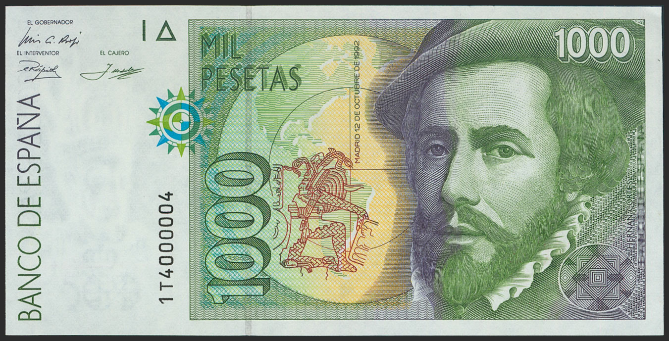 1000 Pesetas. 12 de Octubre de 1992. Serie 1T y numeración capicúa. (Edifil 2021: 483b). SC.