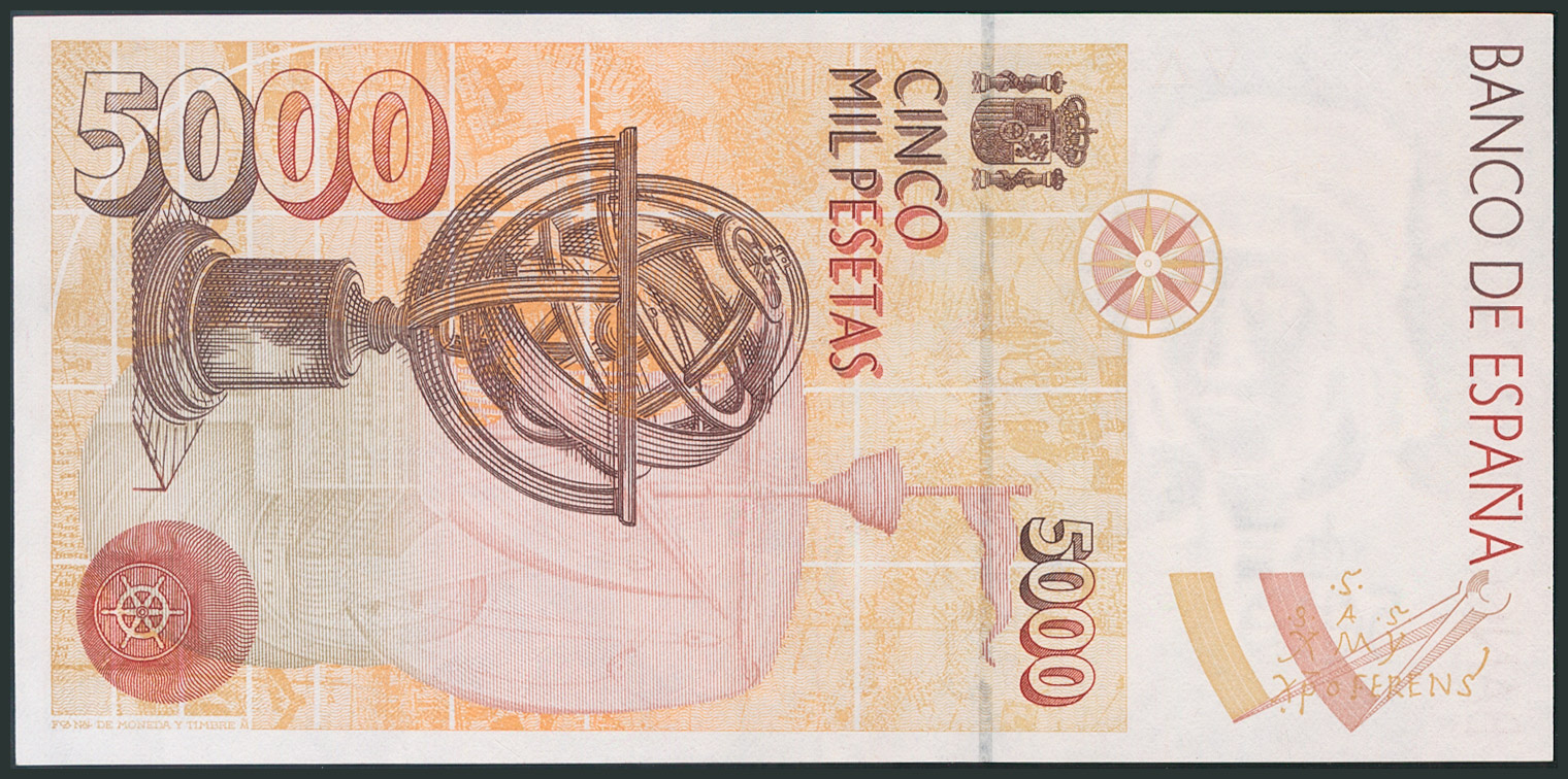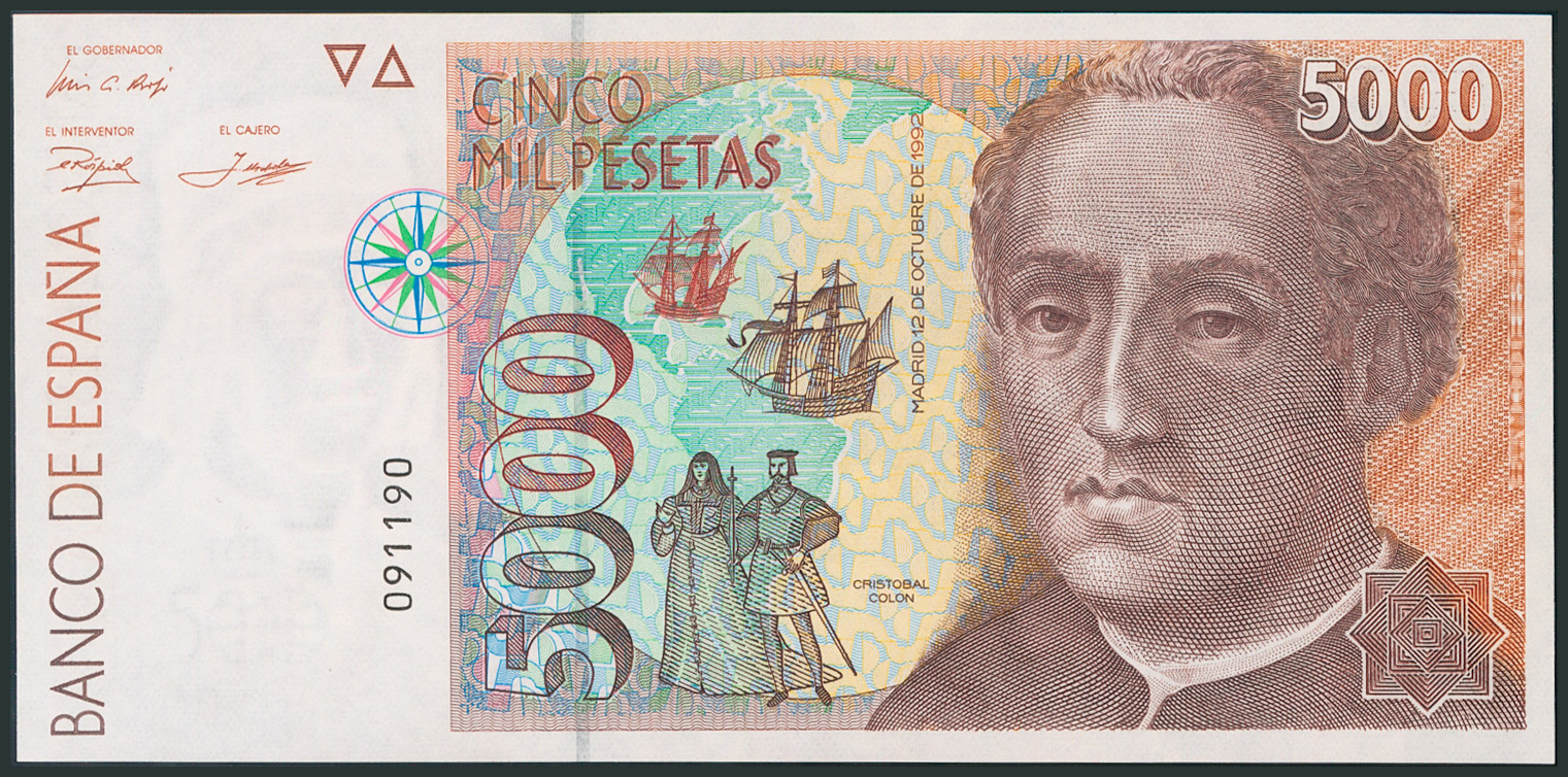 5000 Pesetas. 12 de Octubre de 1992. Capicúa. Sin serie. Apresto original. (Edifil 2017: 484). SC.