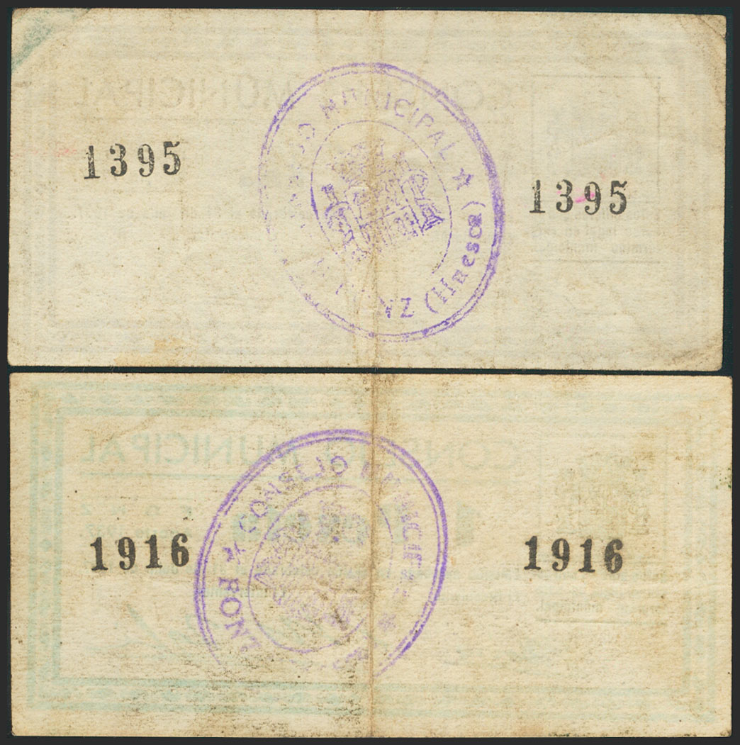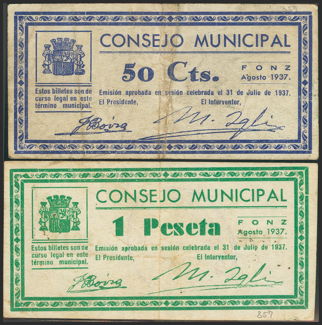 FONZ (HUESCA). 50 Céntimos y 1 Peseta. Agosto 1937. (González: 2477, 2478). Escasos. MBC.
