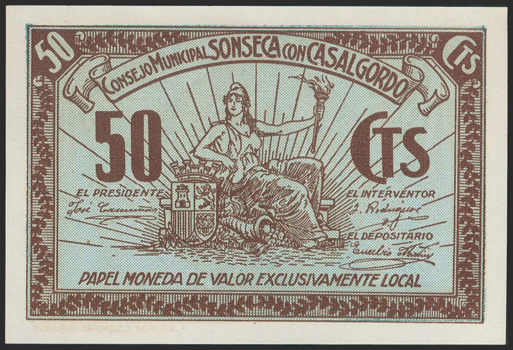 SONSECA CON CASALGORDO (TOLEDO). 50 Céntimos. (1937ca). Sin numeración. (González: 4913). SC.