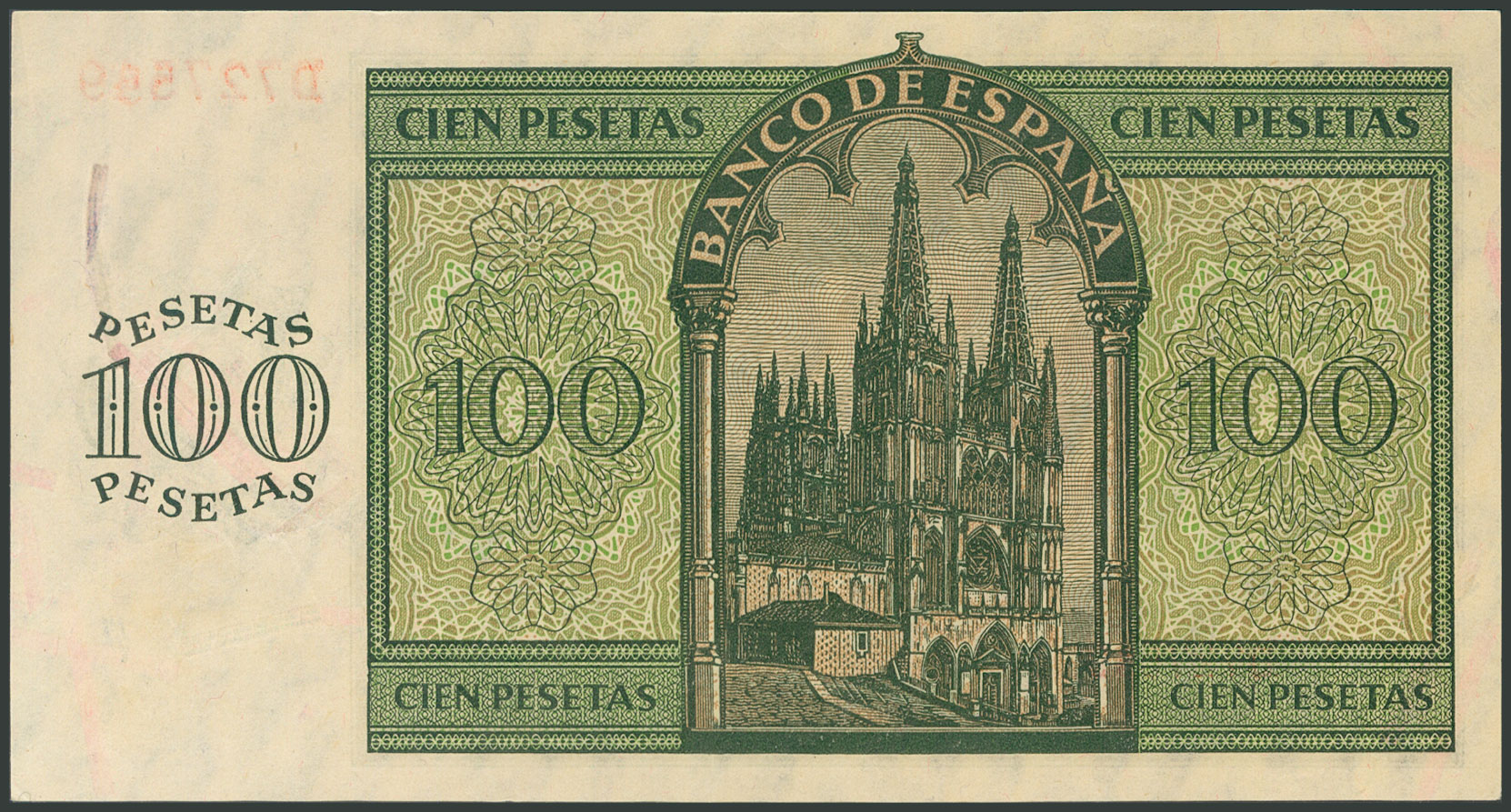 100 Pesetas. 21 de Noviembre de 1936. Serie D. (Edifil 2017: 421a). Apresto original. SC.