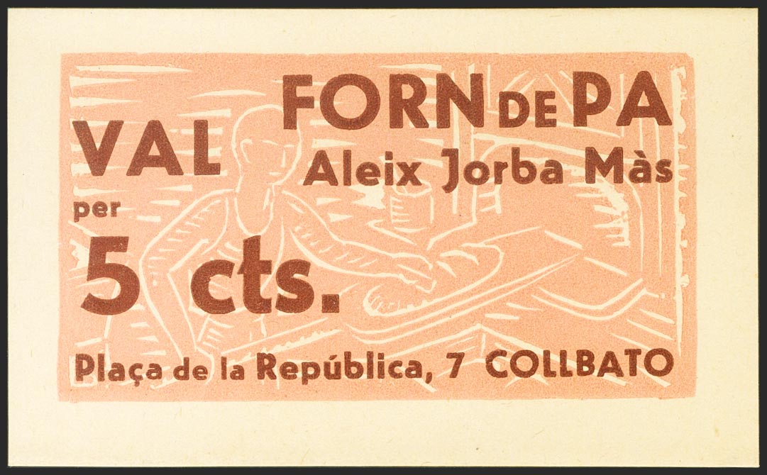 COLLBATO (BARCELONA). 5 Céntimos. (1937ca). Forn de Pa Aleix Jorba Más. (González: 7635). Raro. SC.