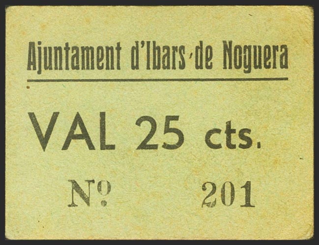 IBARS DE NOGUERA (LERIDA). 25 Céntimos. (1936ca). (González: 8240). Muy raro. EBC.