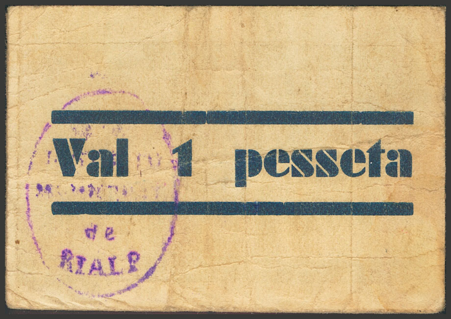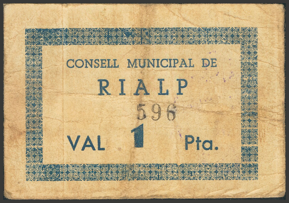 RIALP (LERIDA). 1 Peseta. (1937ca). (González: 9596). Muy raro. MBC.
