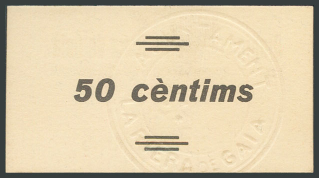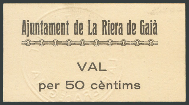 RIERA DE GAIA (TARRAGONA). 50 Céntimos. (1937ca). (González: 9640). Raro. EBC+.