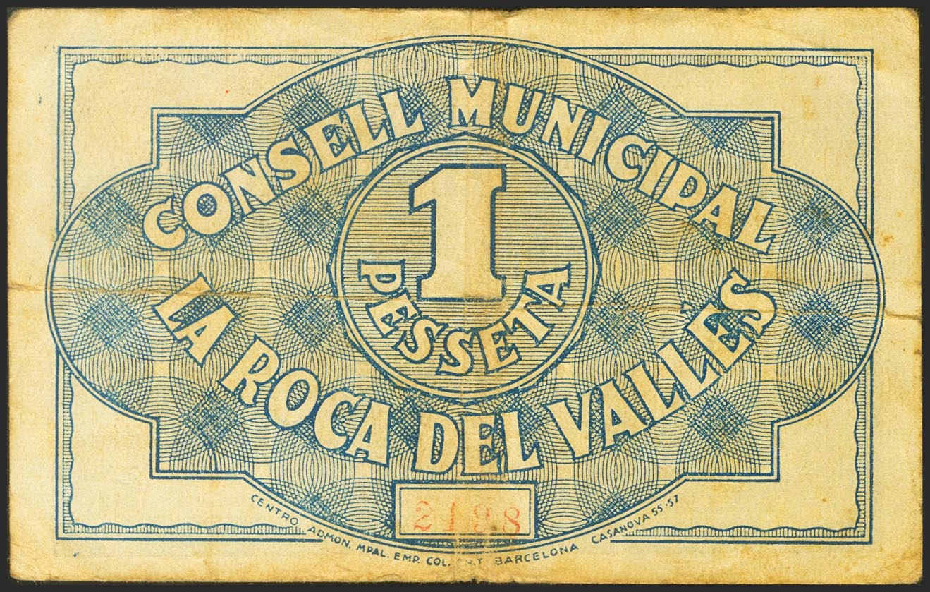 LA ROCA DEL VALLES (BARCELONA). 1 Peseta. 16 de Abril de 1937. (González: 9702). MBC.
