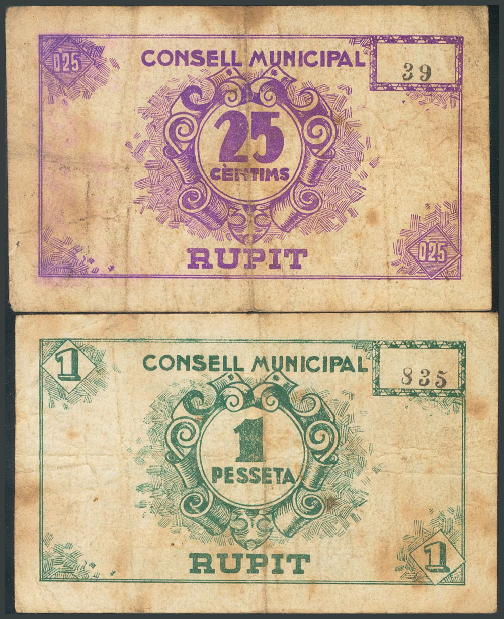 RUPIT (BARCELONA). Junio 1937. (González: 9774/75). Rara serie completa. BC+.