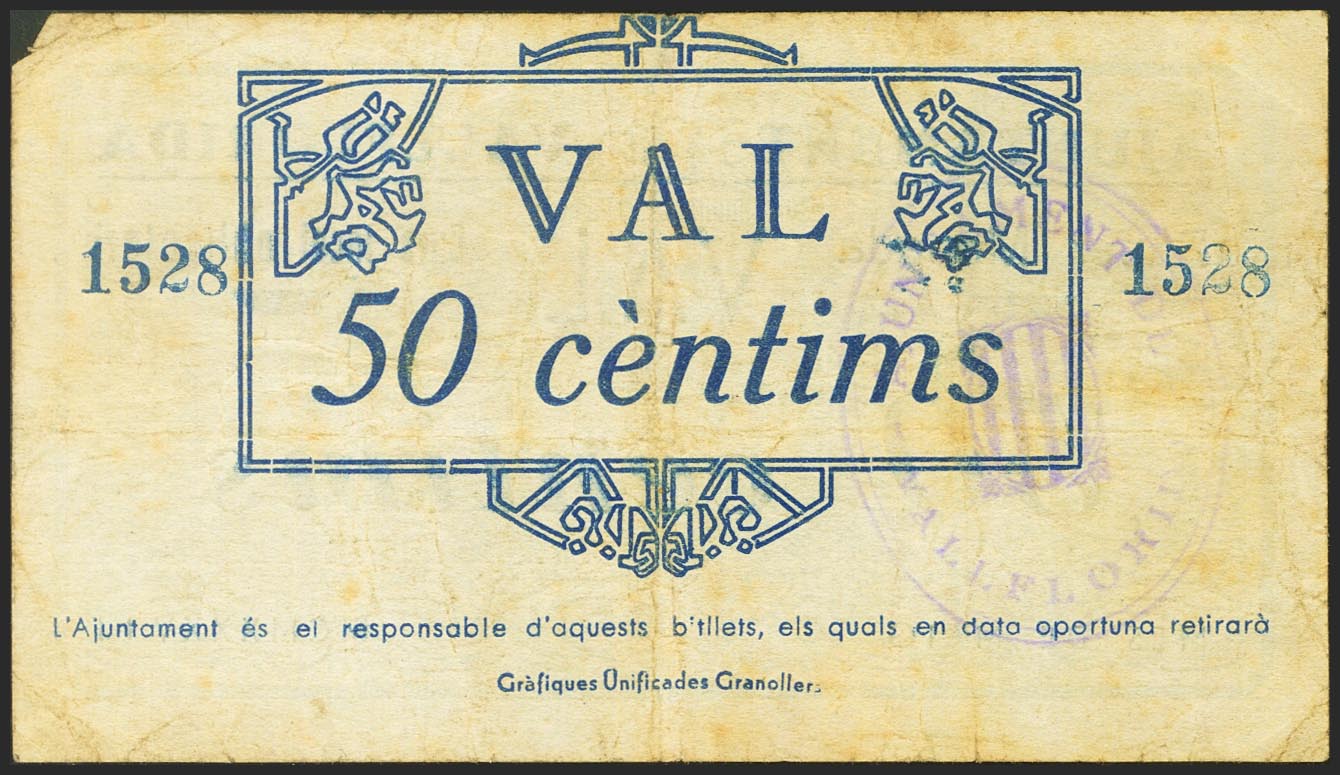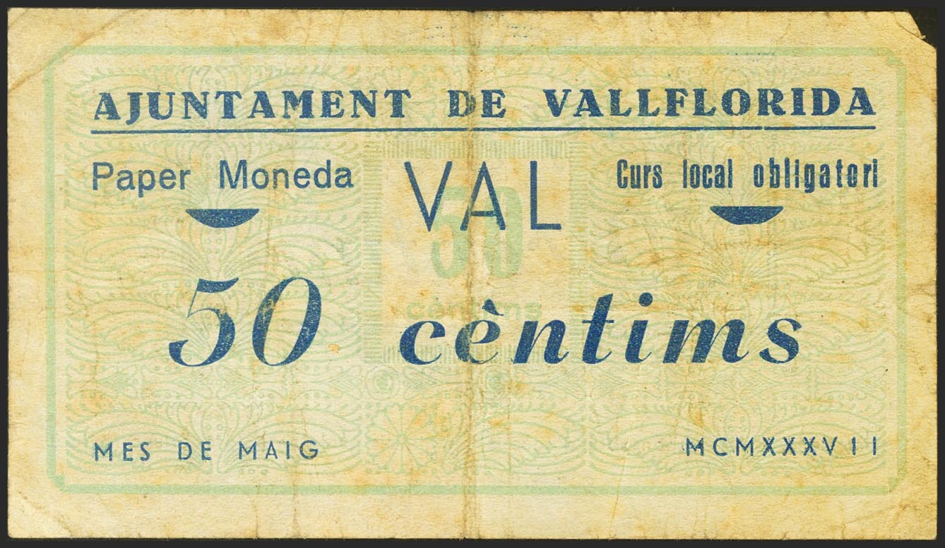 VALLFLORIDA (BARCELONA). 50 Céntimos. Mayo 1937. (González: 10509). Raro. BC.
