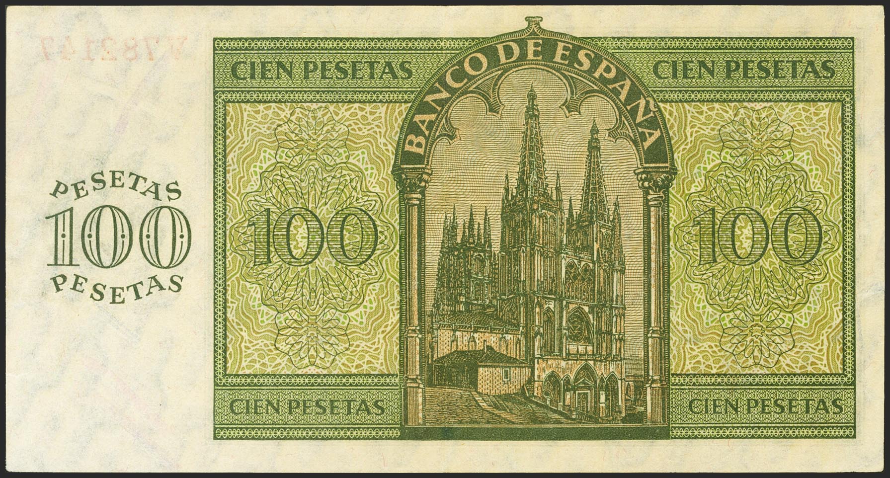100 Pesetas. 21 de Noviembre de 1936. Serie V. (Edifil 2021: 421a). Conserva parte del apresto original. EBC+.