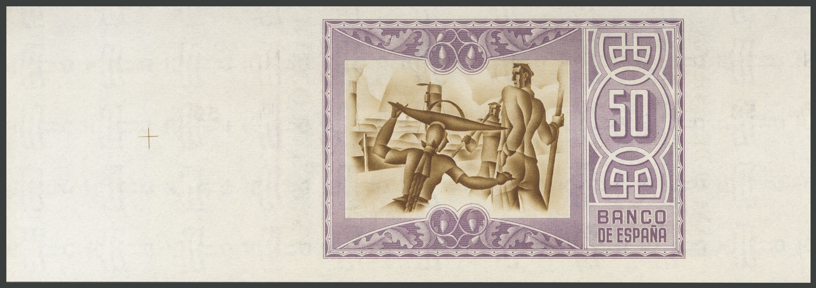 50 Pesetas. 1 de Enero de 1937. Sucursal de Bilbao, antefirma Caja de Ahorros y Monte de Piedad Municipal de Bilbao. Sin serie y sin numeración, con ambas matrices. (Edifil 2017: 389c). SC-.