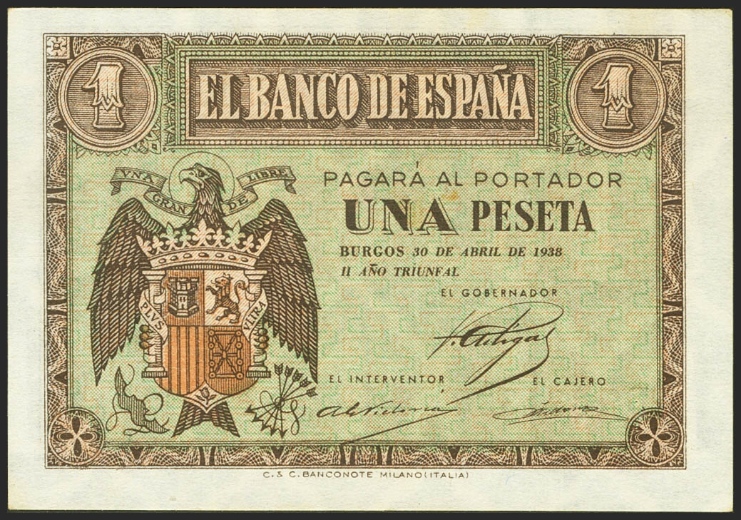 1 Peseta. 30 de Abril de 1938. Serie B. (Edifil 2021: 428a). Apresto original. SC.