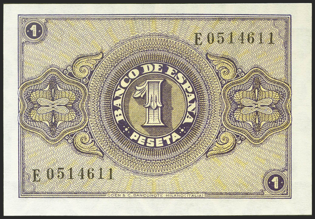 1 Peseta. 30 de Abril de 1938. Serie E. (Edifil 2021: 428a). Apresto original. SC.