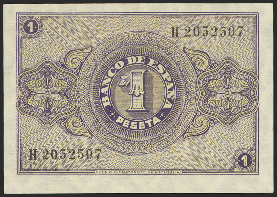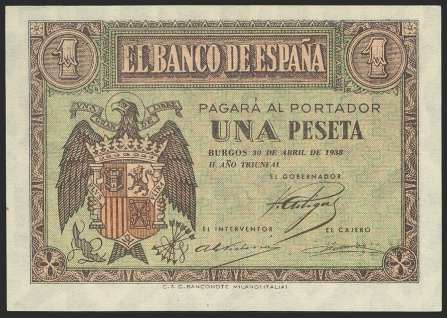 1 Peseta. 30 de Abril de 1938. Serie H. (Edifil 2021: 428a). Apresto original. SC.