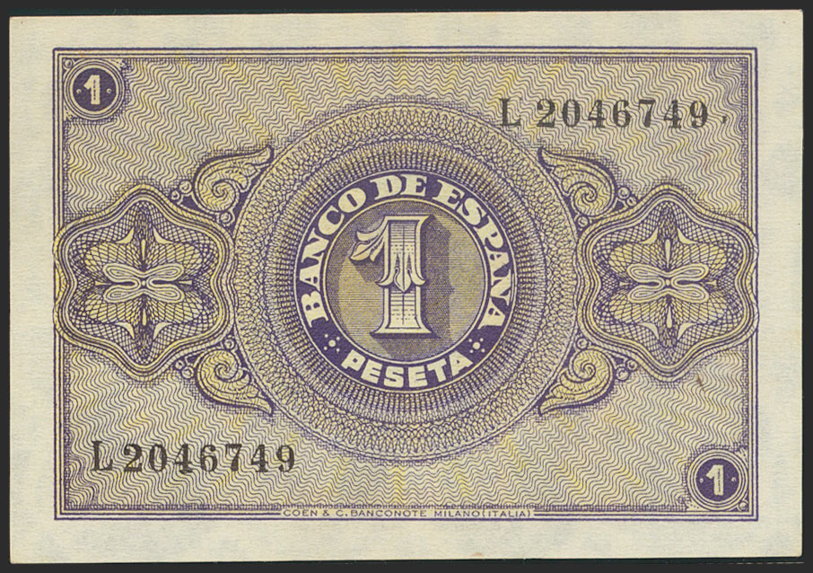 1 Peseta. 30 de Abril de 1938. Serie L. (Edifil 2021: 428a). Apresto original. SC.