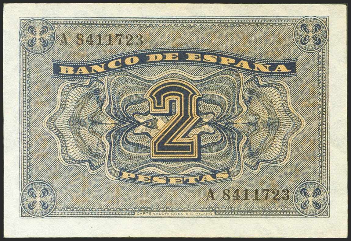 2 Pesetas. 30 de Abril de 1938. Serie A. (Edifil 2021: 429). Apresto original. SC-.