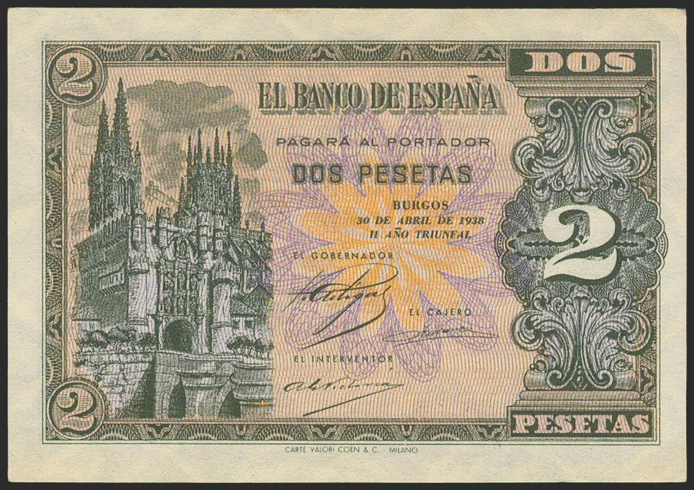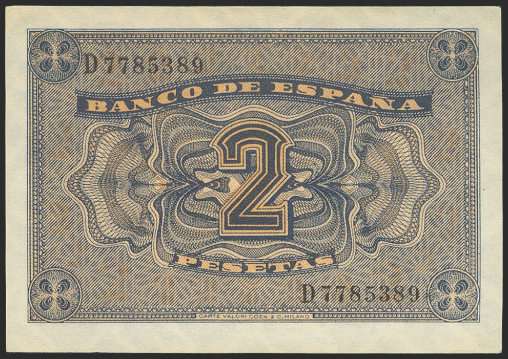 2 Pesetas. 30 de Abril de 1938. Serie D. (Edifil 2021: 429a). Apresto original. SC-.