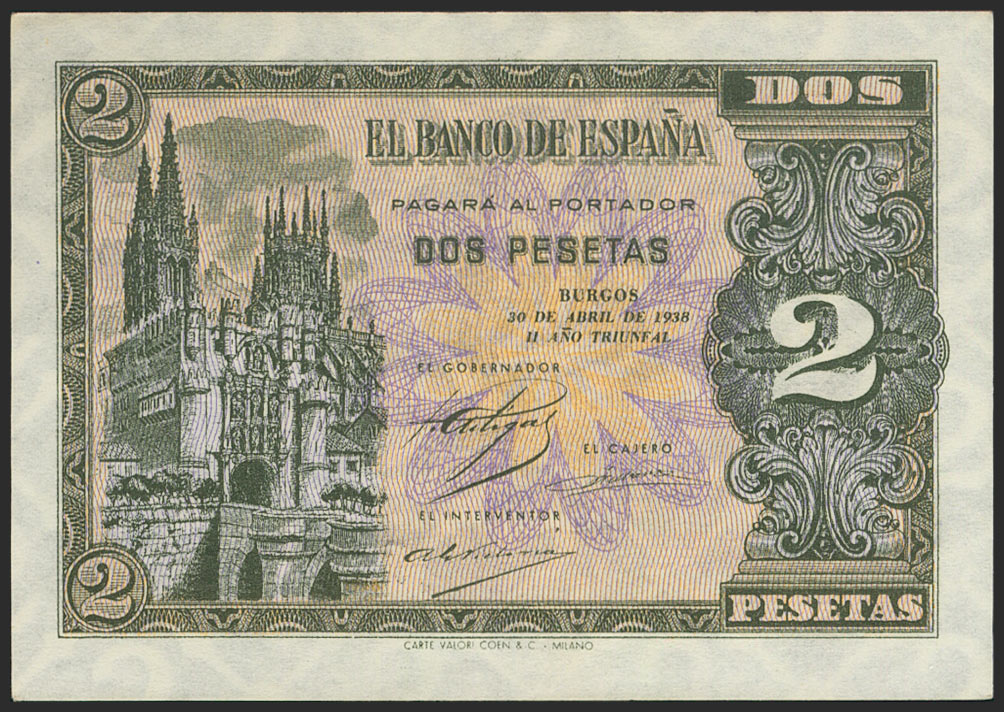 2 Pesetas. 30 de Abril de 1938. Serie E. (Edifil 2021: 429a). Apresto original. SC.