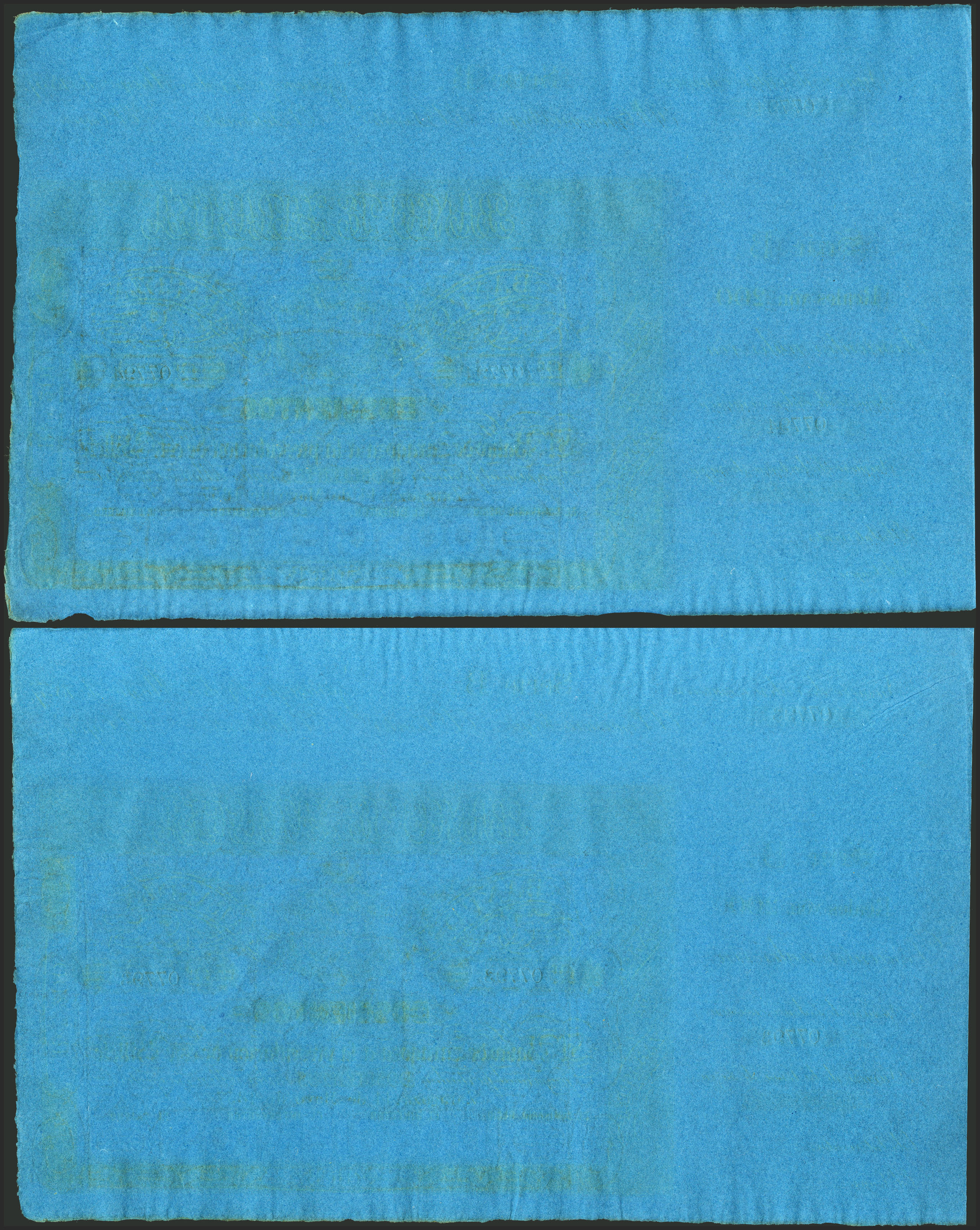 200 Reales. 14 de Mayo de 1857. Pareja correlativa. Banco de Zaragoza. Serie B y con matriz. (Edifil 2021: 127B). Apresto original. SC-.