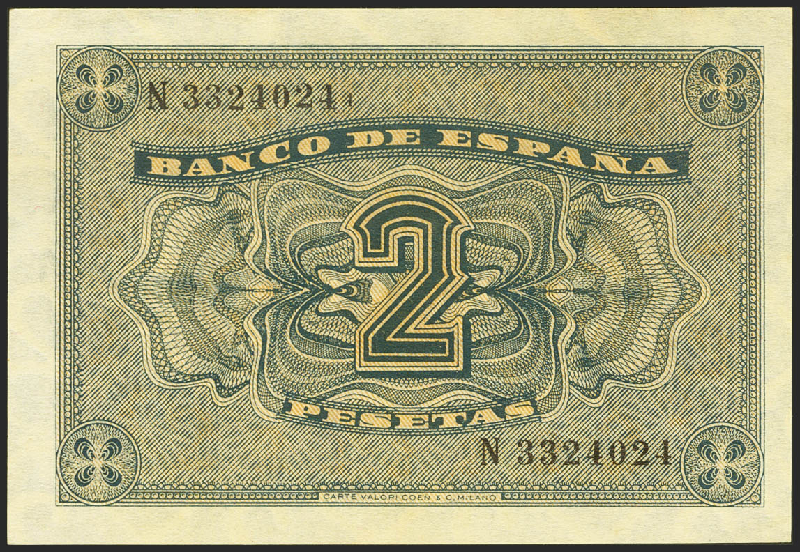 2 Pesetas. 30 de Abril de 1938. Serie N, última serie emitida. (Edifil 2021: 429a). Apresto original. EBC+.