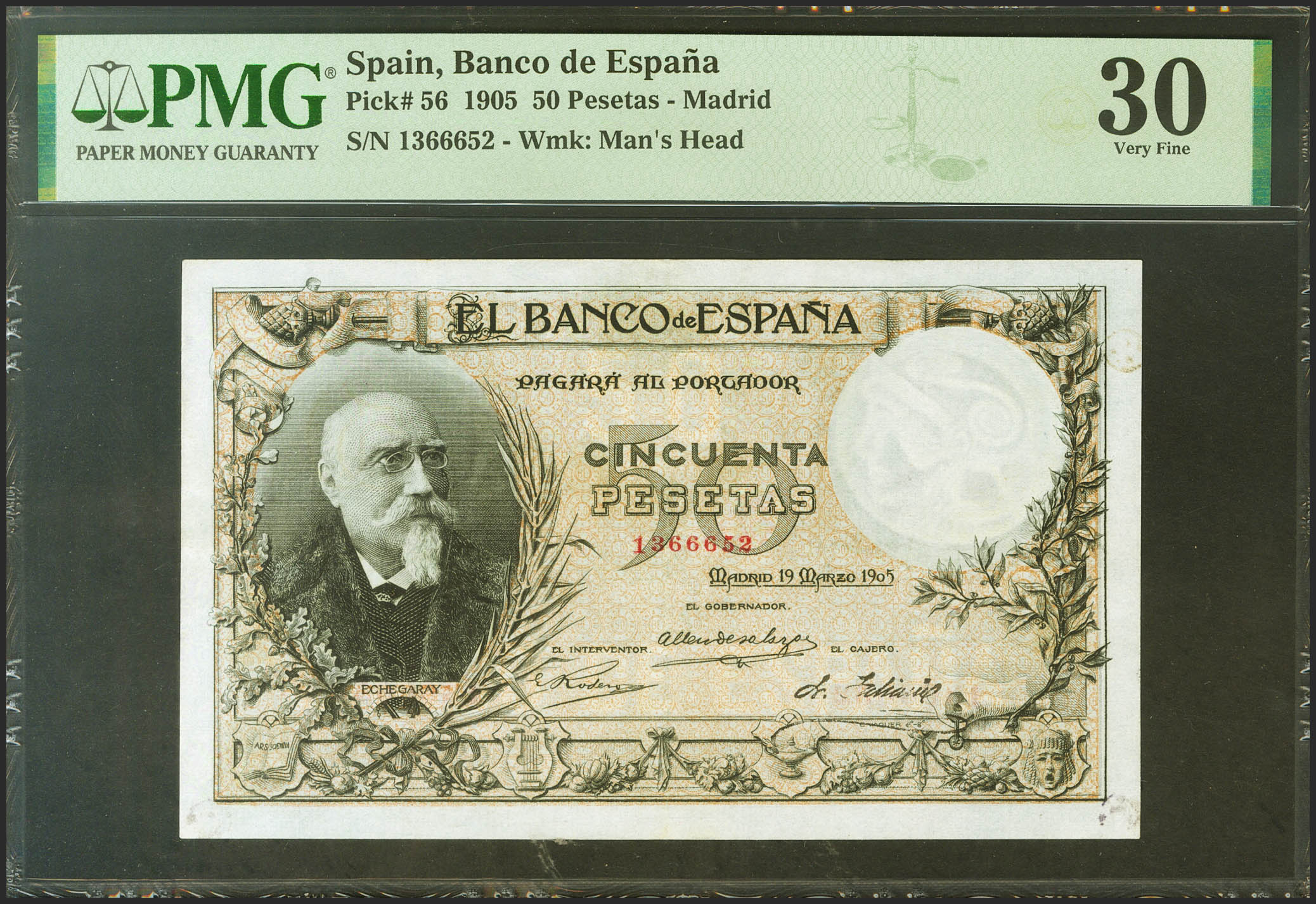 50 Pesetas. 19 de Marzo de 1905. Sin serie. (Edifil 2021: 312, Pick: 56). Raro, mínimamente reparado. MBC+. Encapsulado PMG30.