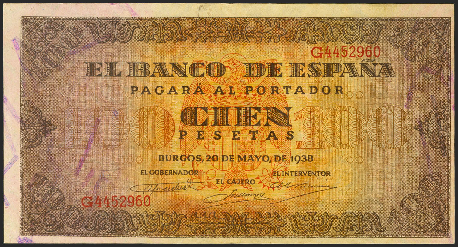 100 Pesetas. 20 de Mayo de 1938. Serie G. (Edifil 2021: 432a). Conserva gran parte de su apresto original. EBC+.