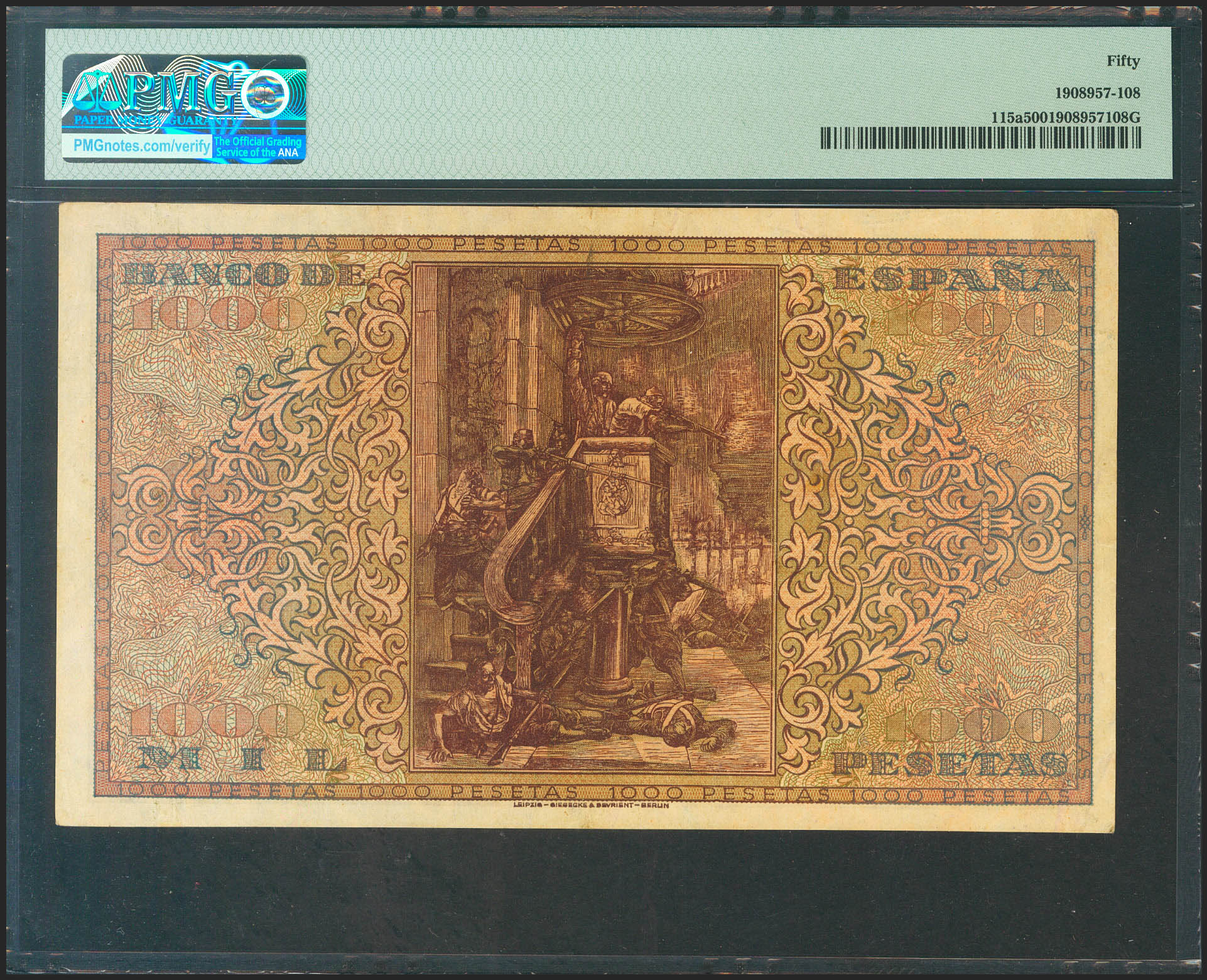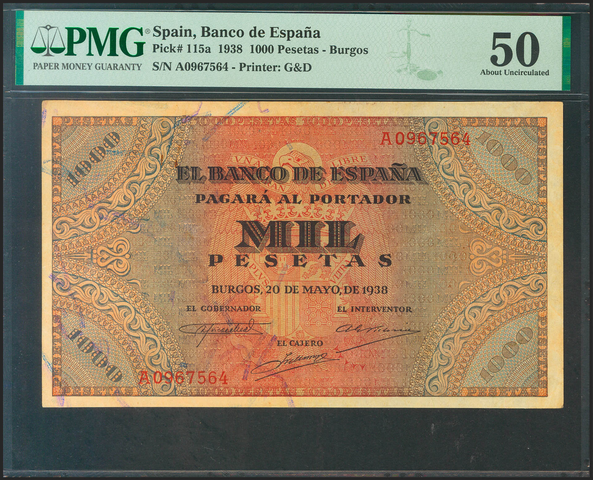 1000 Pesetas. 20 de Mayo de 1938. Serie A. (Edifil 2021: 434, Pick: 115a). Inusual en esta calidad. EBC+. Encapsulado PMG50.