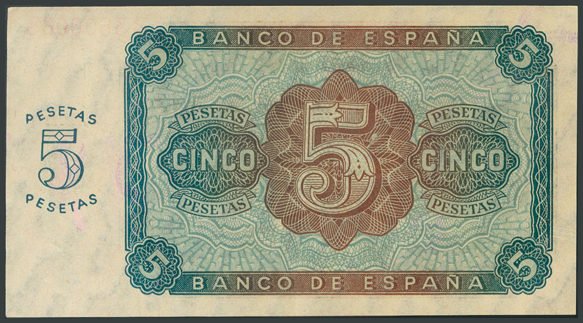 5 Pesetas. 10 de Agosto de 1938. Serie B. (Edifil 2017: 435a). Apresto original. EBC+.