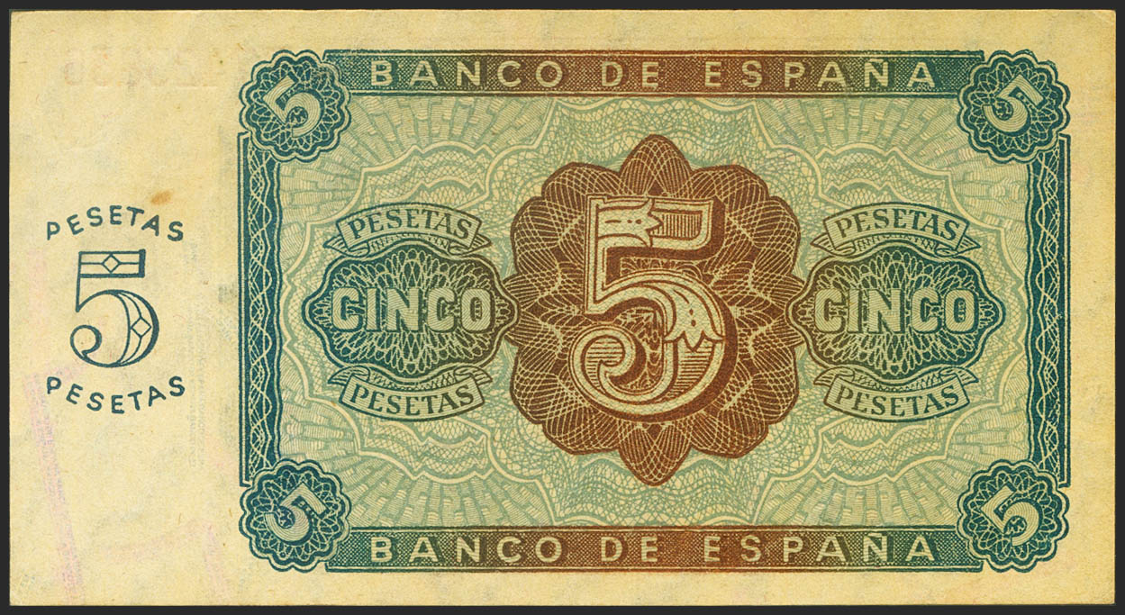 5 Pesetas. 10 de Agosto de 1938. Serie F. (Edifil 2021: 435a). Apresto original. SC-.