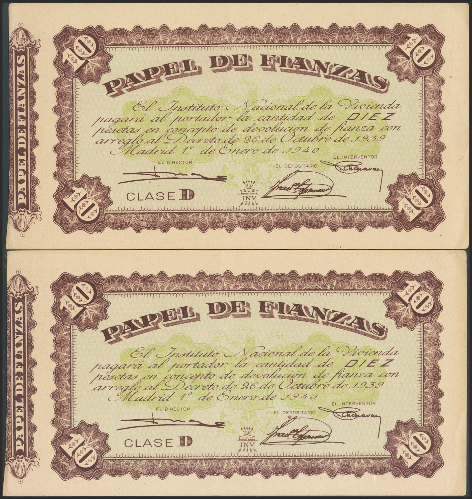 10 Pesetas. 1 de Enero de 1940. PAPEL DE FINANZAS. Pareja correlativa. Serie A. EBC+.