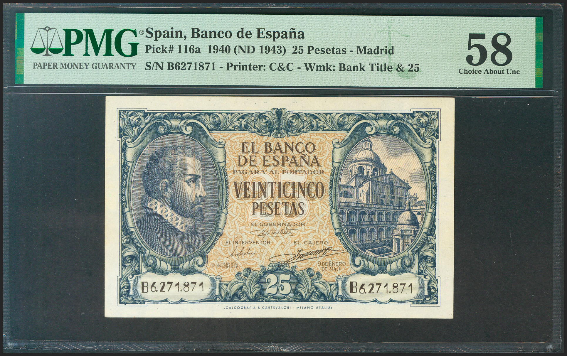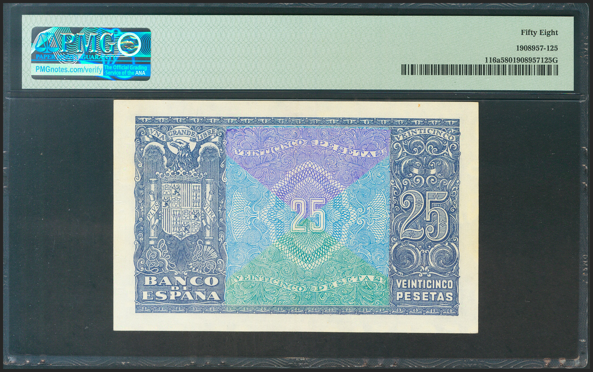 25 Pesetas. 9 de Enero de 1940. Serie B. (Edifil 2021: 436a, Pick: 116a). EBC++. Encapsulado PMG58.