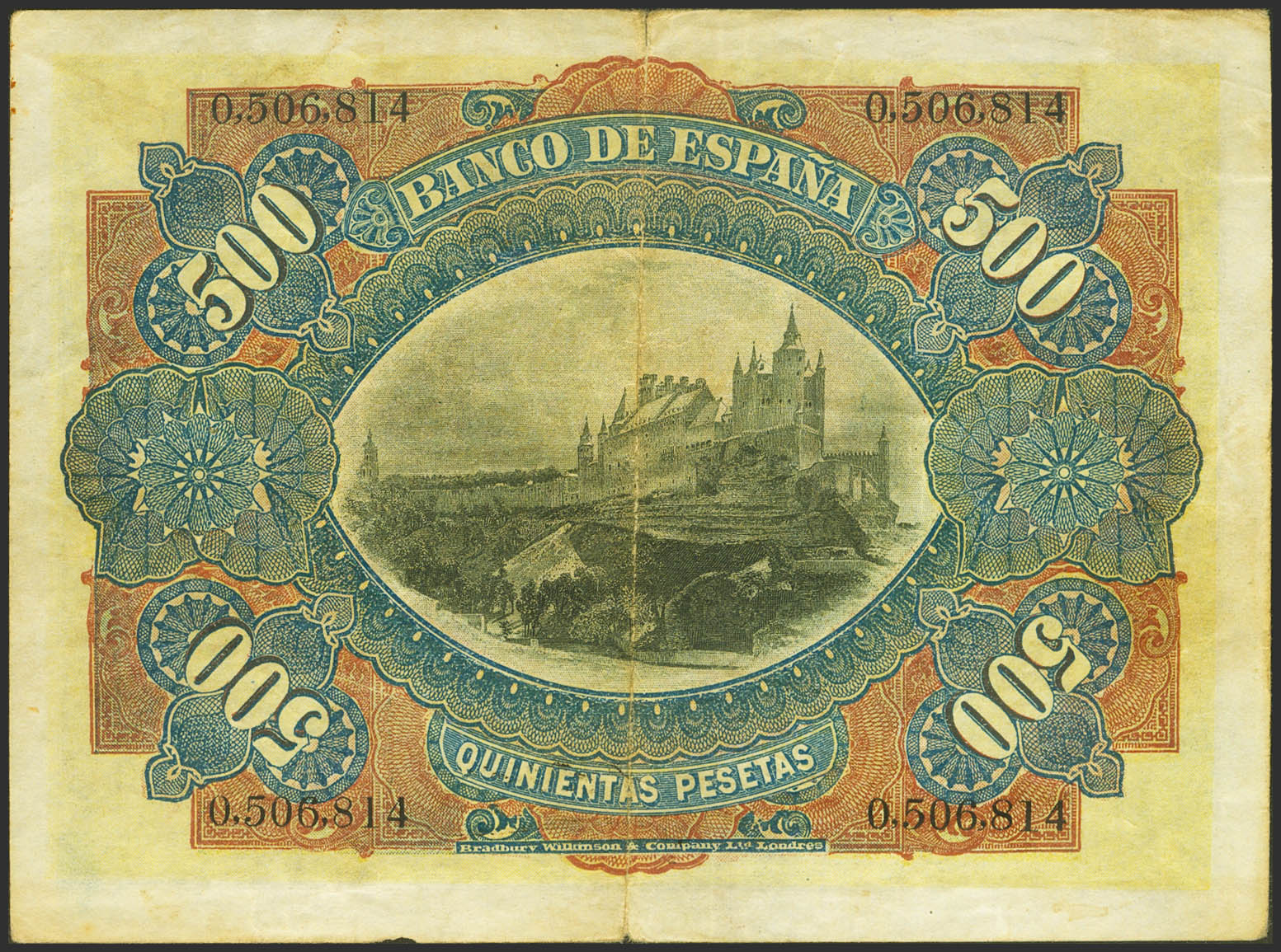 500 Pesetas. 15 de Junio de 1907. Sin serie. (Edifil 2021: 321). Inusual, especialmente sin reparaciones. MBC.
